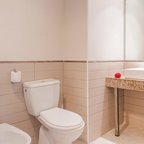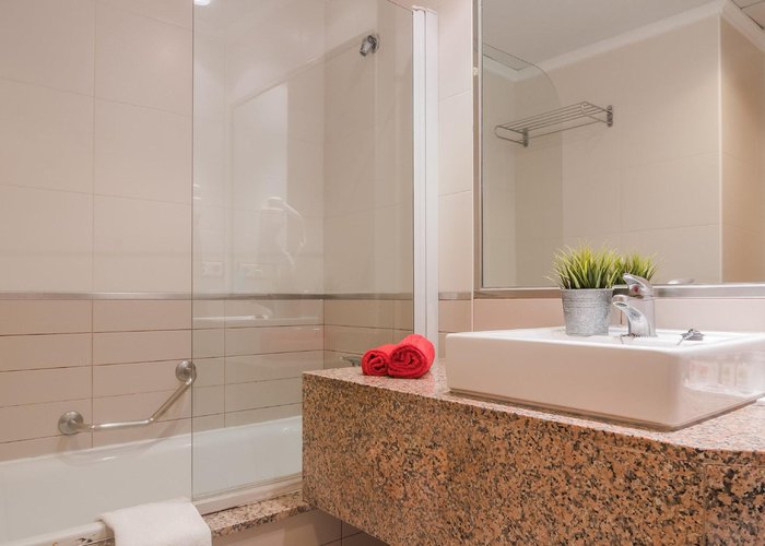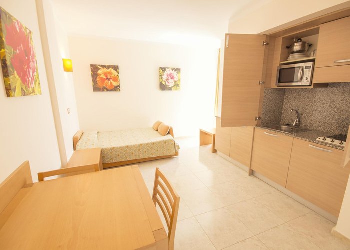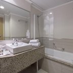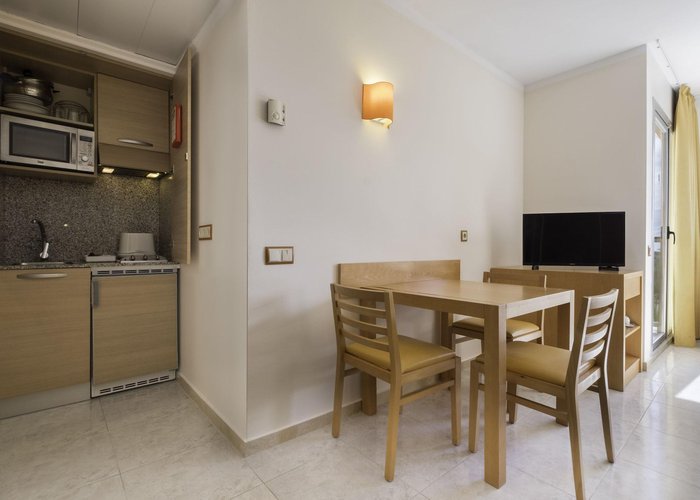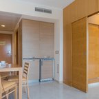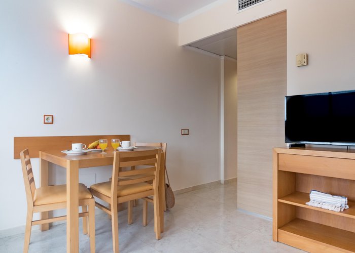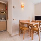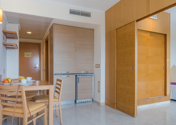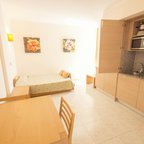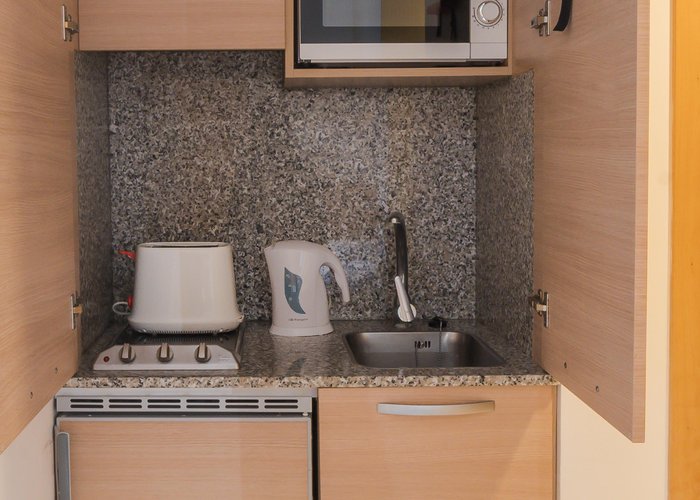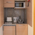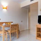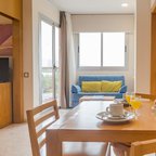 Air conditioning and central heating ensure that rooms maintain comfortable temperatures. The rooms have a double bed and a sofa bed. Children's beds and extra beds can be requested for younger guests. A safe and a desk are also available. There is a fully-equipped kitchenette with a refrigerator, mini fridge, microwave and tea/coffee station. A telephone, a television with satellite/cable channels and WiFi (no extra charge) provide all the essentials for a comfortable holiday. Bathrooms include a hairdryer and are equipped with a shower and a bathtub. Guests can also book wheelchair-friendly rooms with wheelchair-accessible bathrooms. Family rooms are available for parents with children.