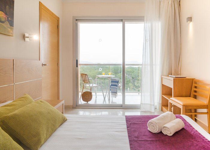 Strategically located in the centre of the Es Canar resort, a mere 200 m from its magnificent sandy beach, the hotel is within walking distance of the renowned Hippy Market and just 5 km from the nearby town of Santa Eulalia. Ibiza Airport is 25 km from the hotel.
