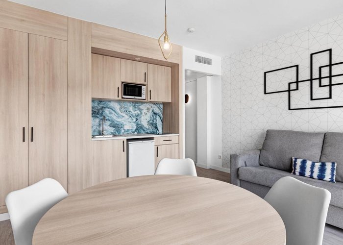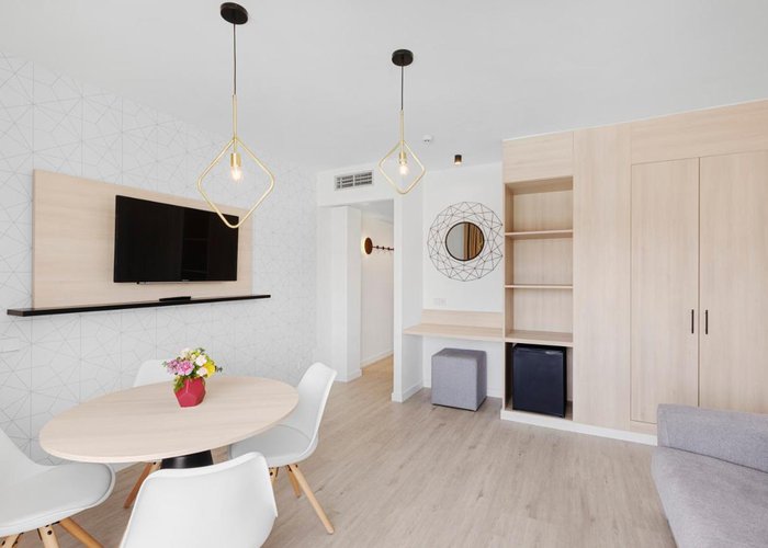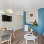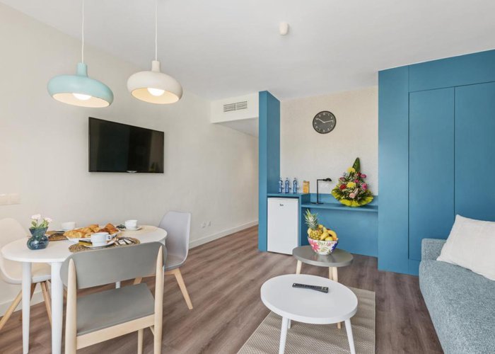 Air conditioning and central heating ensure that rooms maintain comfortable temperatures. Most of rooms include a balcony or terrace as a standard feature. Extra beds can be requested. A minibar is provided. A kitchenette with a refrigerator, a microwave and a tea/coffee station is also provided as standard. Other features include a TV, an alarm clock and WiFi (for a fee). A hairdryer and a telephone are on hand in the bathrooms for everyday use. Wheelchair-friendly rooms with wheelchair-accessible bathrooms are also available. The hotel has family rooms and non-smoking rooms.