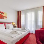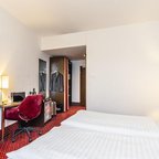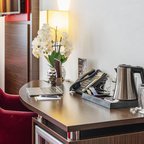 Air conditioning and individually adjustable heating ensure that rooms maintain comfortable temperatures. A balcony is among the standard features of some rooms. All rooms are carpeted and have a double bed or a queen-size bed. A safe, a minibar and a desk are also available. Guests will also find a tea/coffee station included among the standard features. An ironing set is provided for guests' convenience. A direct dial telephone, a television with satellite/cable channels, a radio, an alarm clock and WiFi (no extra charge) are provided as well. Slippers are included. Bathrooms are equipped with a shower and a bathtub. A hairdryer, a vanity mirror, bathrobes and a telephone are provided. For extra comfort in the bathrooms, guests are offered cosmetic products. Wheelchair-friendly rooms can be booked. The hotel has family rooms and 187 non-smoking rooms.