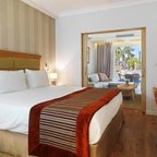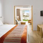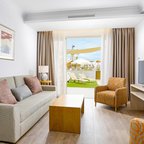 Rooms are equipped with air conditioning and central heating. Guests can relax and enjoy the sea views from the balcony or private terrace of some rooms. All rooms are carpeted and include a queen-sized bed and a sofa bed. Separate bedrooms are available. Children's beds and extra beds can be requested for younger guests. A safe, a minibar and a desk are also available. For guests' convenience, units include a refrigerator and a tea/coffee station. An ironing set is provided for guests' convenience. A direct dial telephone, a television with satellite/cable channels, a radio and WiFi (no extra charge) provide all the essentials for a comfortable holiday. Slippers are included. Bathrooms are equipped with a shower, a bathtub and a whirlpool bath. A hairdryer, a vanity mirror and bathrobes are available for daily use. As a special feature, bathrooms are also stocked with cosmetic products and a selection of towels. Wheelchair-friendly rooms can be booked. The complex has family rooms and non-smoking rooms.