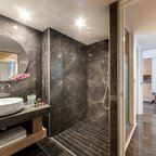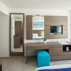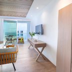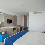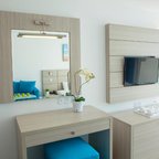 Air conditioning and central heating ensure that rooms maintain comfortable temperatures. Guests can enjoy the sea view from a balcony or terrace. Rooms include a king-size bed. Separate bedrooms are available. A safe, a minibar and a desk are also available. Additional features include a refrigerator and a tea/coffee station. A direct dial telephone, a television with satellite/cable channels, a radio and WiFi (for a fee) provide all the essentials for a comfortable holiday. Slippers are included. Bathrooms are equipped with a shower and a bathtub. A hairdryer, a vanity mirror and bathrobes are provided. For extra comfort in the bathrooms, guests are offered cosmetic products. Guests can also book wheelchair-friendly rooms with wheelchair-accessible bathrooms. The hotel has non-smoking rooms and smoking rooms.