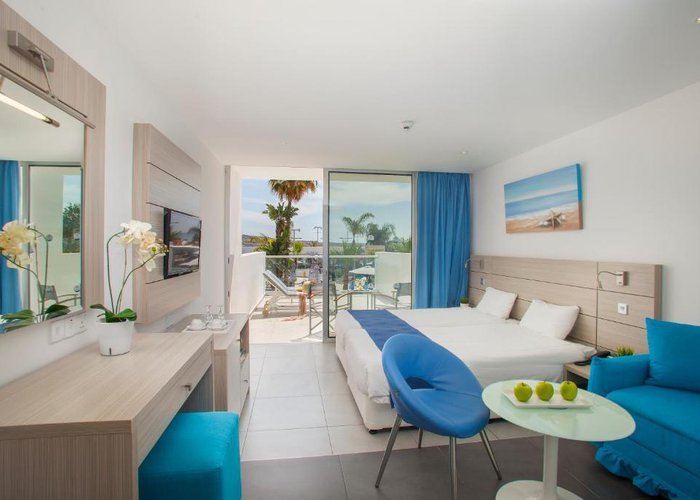 This hotel is located right in the centre of Ayia Napa. The beach, the superb harbour as well as a diversity of shopping venues, restaurants and further entertainment options are to be found very nearby and may easily be reached on foot. Larnaca's airport lies around 40 km away and the wonderful Cypriot capital, Nicosia, is 85 km from the hotel.