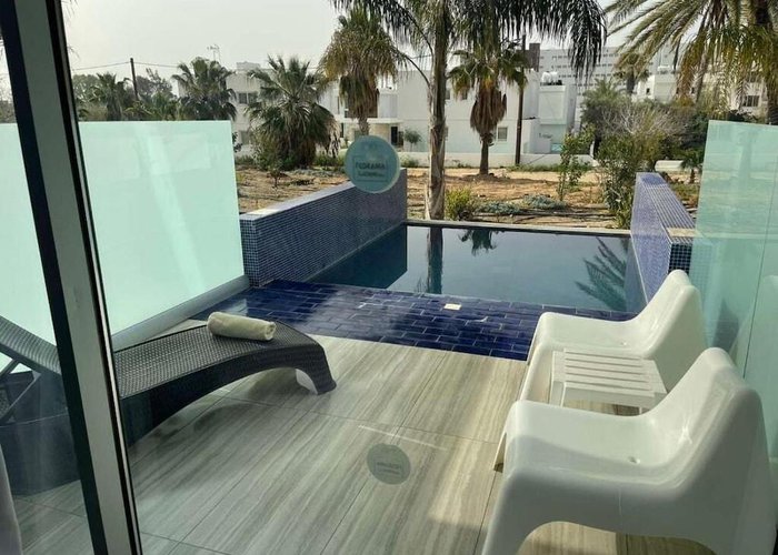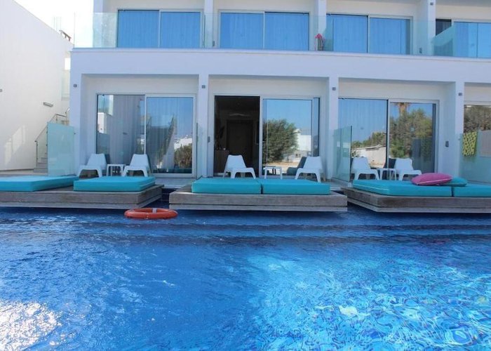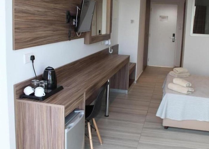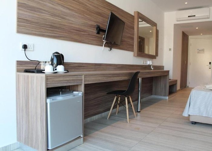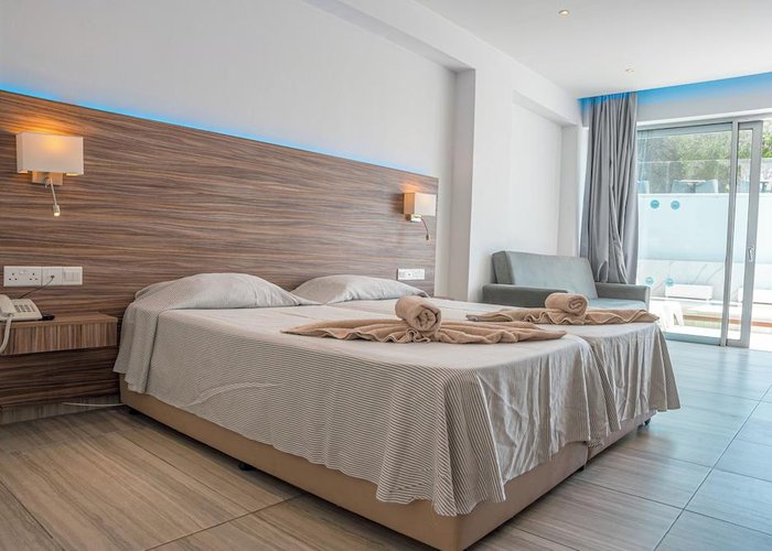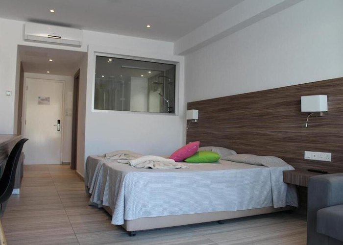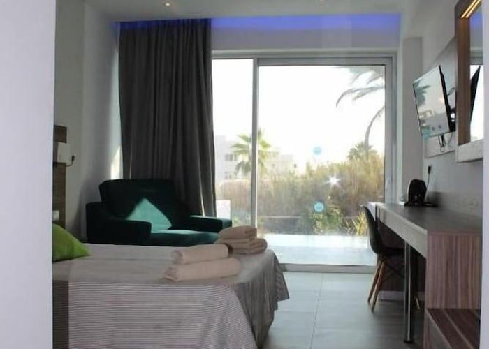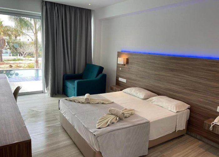 The hotel is some 300 m from the beach and only about 1.5 km away from the centre of Ayia Napa. It is within easy reach of all of the restaurants, bars, pubs and shops. The bus station is approximately 300 m away and various nightspots can be reached in about a 15-minute walk. The hotel is around 1 km away from the Napa Olympic clinic. Larnaca Airport is approximately 45 km away.