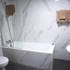 Air conditioning and central heating ensure that rooms maintain comfortable temperatures. Guests can enjoy the sea view from a balcony or terrace. The rooms have a double bed and a sofa bed. Separate bedrooms are available. A safe and a minibar are also available. Guests will also find a refrigerator included among the standard features. An ironing set is provided for guests' convenience. A direct dial telephone, a TV, a radio and WiFi (no extra charge) are provided as well. Bathrooms are equipped with a shower and a bathtub, as well as a hairdryer. The hotel has family rooms and non-smoking rooms.