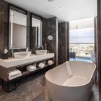 Rooms are equipped with air conditioning and central heating. In most units, guests can enjoy a view of the sea from a balcony or terrace. Rooms have a double bed, a queen-size bed or a king-size bed. Extra beds can be requested. A safe, a minibar and a desk are also available. Guests will also find a tea/coffee station included among the standard features. There is also an ironing set and a trouser press. A telephone, a television with satellite/cable channels, a radio, a plug adapter, an alarm clock and WiFi (no extra charge) are provided as well. Guests will also find slippers in their rooms. Bathrooms are equipped with a shower and include a hairdryer. Cosmetic products and a selection of towels provide additional comfort in the bathrooms. Wheelchair-friendly rooms with wheelchair-accessible bathrooms are also available. The hotel has family rooms and non-smoking rooms.