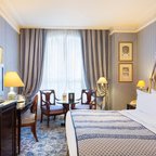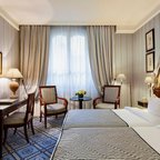 Air conditioning and individually adjustable heating ensure that rooms maintain comfortable temperatures. A balcony is included as standard in some rooms. All rooms are carpeted and include a double bed, a queen-size bed or a king-size bed. Extra beds can be requested. A safe, a minibar and a desk are also available. Additional features include a refrigerator, a mini fridge and a tea/coffee station. An ironing set is provided for guests' convenience. A direct dial telephone, a television with satellite/cable channels, a radio, an alarm clock and WiFi (no extra charge) are provided as well. Guests can take advantage of the nightly turndown service. Slippers are included. Bathrooms are equipped with a shower and a bathtub. A hairdryer, bathrobes and a telephone are available for daily use. For extra comfort in the bathrooms, guests are offered cosmetic products. Guests can also book wheelchair-friendly rooms with wheelchair-accessible bathrooms. The hotel has family rooms and 45 non-smoking rooms.