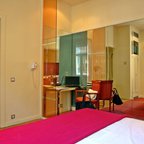 Air conditioning and central heating ensure that rooms maintain comfortable temperatures. All rooms are carpeted and include a double bed or a queen-size bed. Extra beds can be requested. A safe and a desk are also available. Guests will also find a refrigerator included among the standard features. A trouser press is provided for guests' convenience. A telephone, a television with satellite/cable channels and WiFi (no extra charge) are provided as well. Bathrooms are equipped with a shower and a bathtub, as well as a hairdryer. As a special feature, bathrooms are also stocked with cosmetic products and a selection of towels. The hotel has non-smoking rooms.