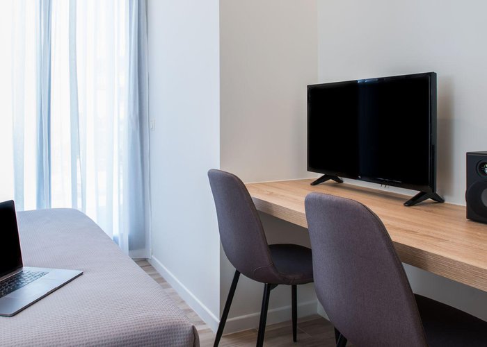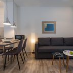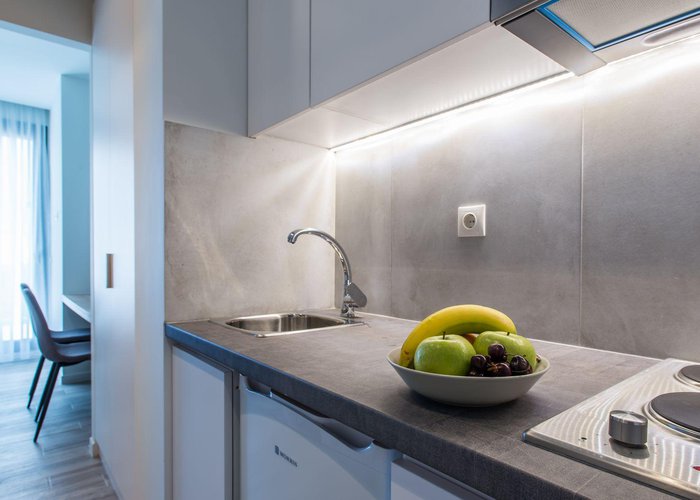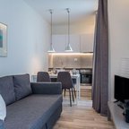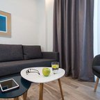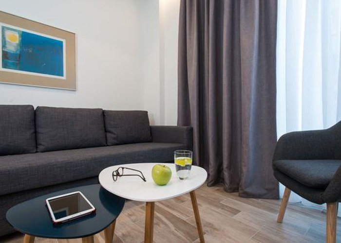 Rooms feature a living area, a kitchen and a bathroom. Air conditioning and central heating ensure comfortable temperatures. Guests can enjoy the view of the city from a balcony or terrace. The rooms have a queen-size bed and a sofa bed. Separate bedrooms are available. Children's beds and extra beds can be requested for younger guests. A safe provides secure storage for guests' personal property. The kitchenette comes with a microwave and a tea/coffee station. A trouser press is provided for guests' convenience. A telephone, a TV and WiFi (no extra charge) are provided as well. Bathrooms are equipped with a shower and a hairdryer. The hotel has family rooms and non-smoking rooms.
