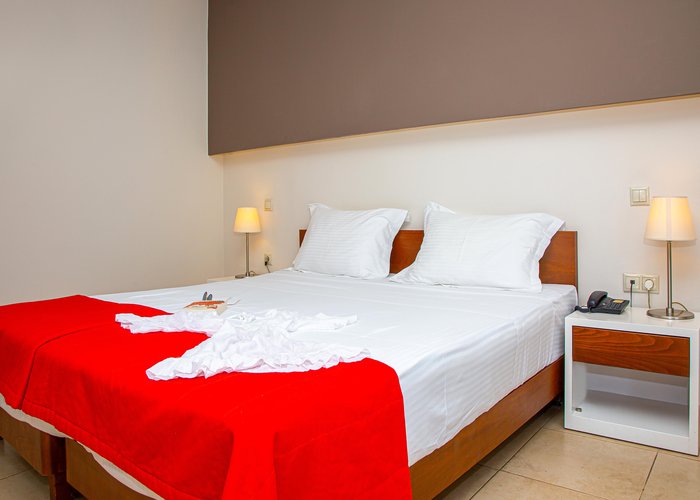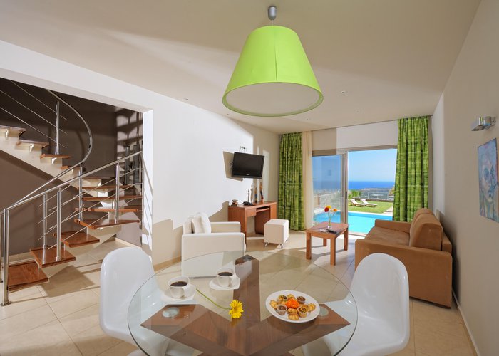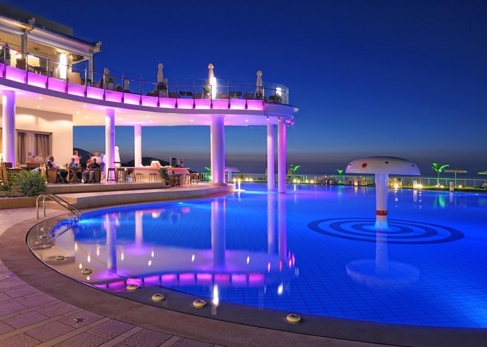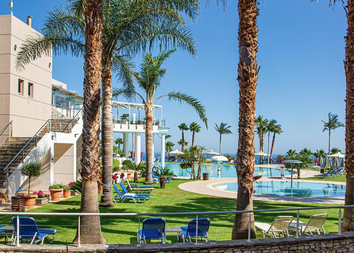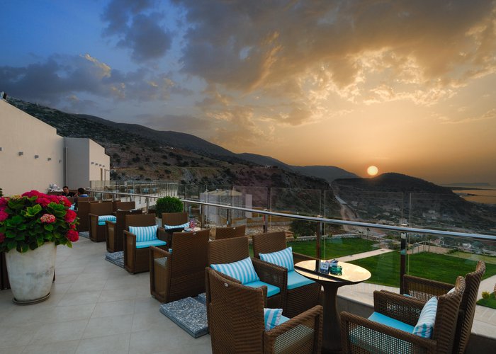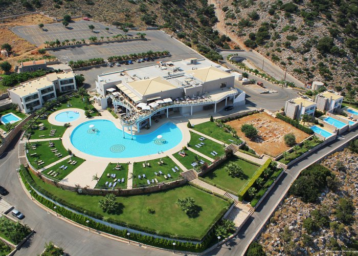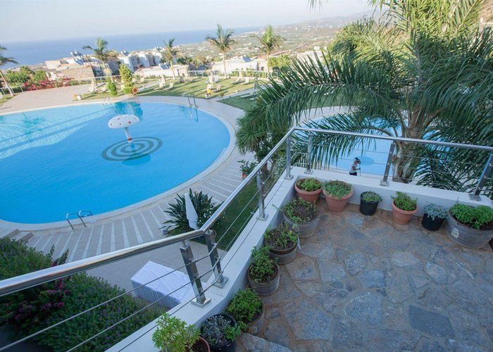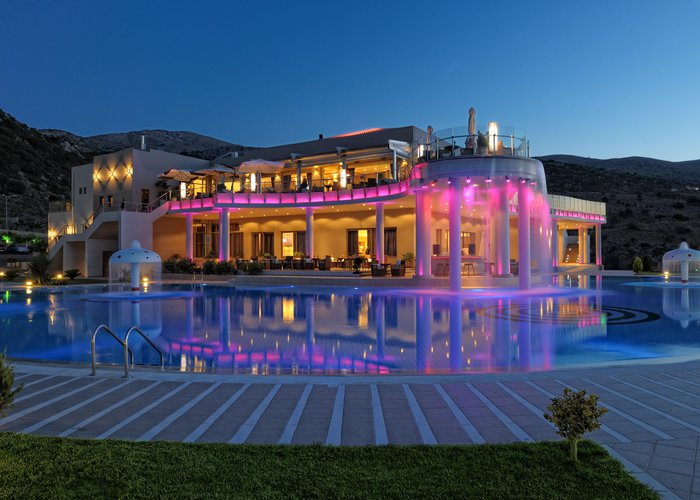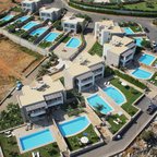 The hotel is situated in the Pezoula area of Malia, on a hill amidst 60 acres of land, with a panoramic view of the sea. It is located just a 2-minute drive from the beautiful beach of Malia. The city centre of Malia is around 2 km away, and guests will find restaurants, bars and nightlife some 1 to 1.5 km from the hotel. Links to the public transport and the bus station are also about 1.5 km from the hotel. Attractions in the area include the Malia Archaeological Site, roughly 2 km away, the Creta Aquarium, some 25 km away, and the Knossos Archaeological Site, about 40 km away. The hotel is 20 minutes by car from the Heraklion International Airport, Nikos Kazantzakis.