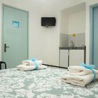 Air conditioning ensures that rooms maintain comfortable temperatures. A balcony is included as standard in some rooms. Rooms include a double bed. A kitchenette with a refrigerator is also provided. Equipped with a direct dial telephone, a TV and WiFi (no extra charge), the rooms provide many ways for guests to stay connected and entertained. Bathrooms are equipped with a shower and a bathtub, as well as a hairdryer. As an extra convenience, bathrooms provide cosmetic products. Family rooms are available for parents with children.