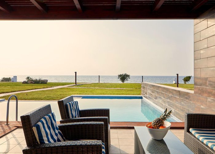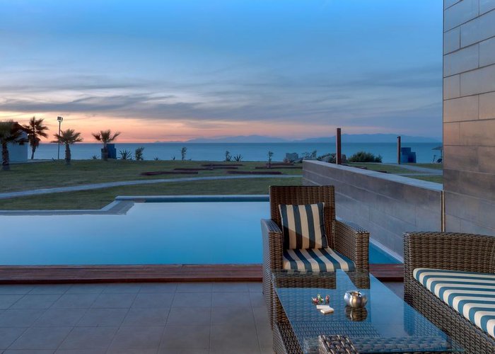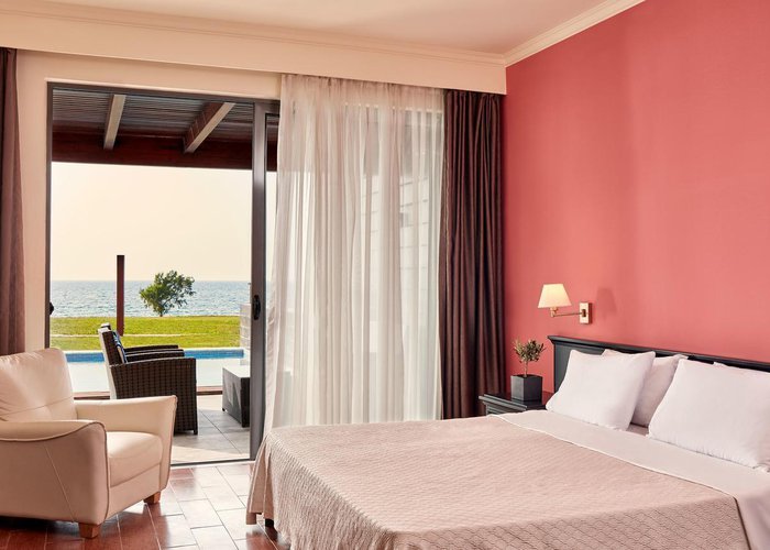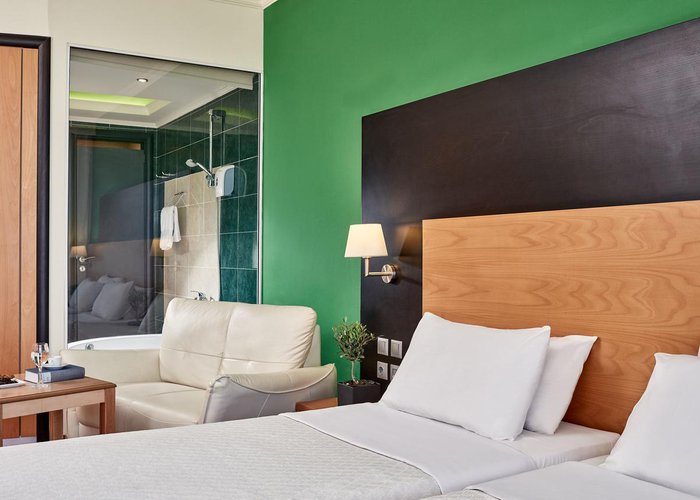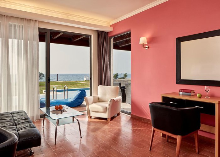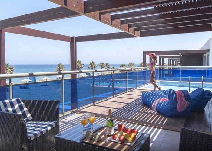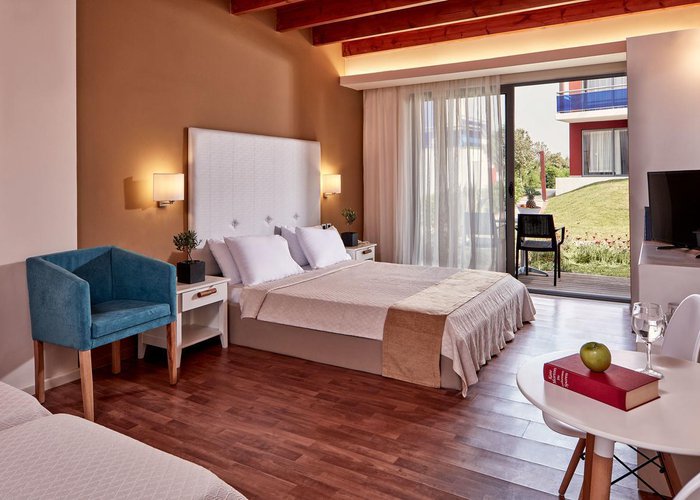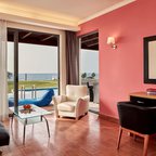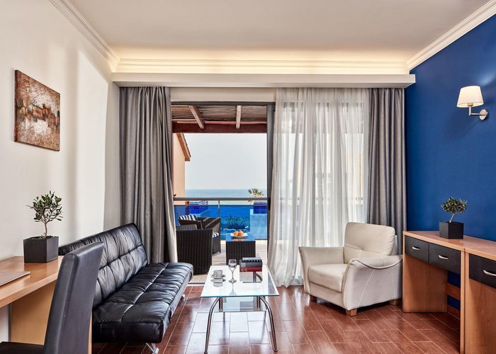 Rooms feature a living room, a kitchen and a bathroom. Air conditioning and central heating ensure comfortable indoor temperatures. Guests can enjoy the sea view from a balcony or terrace. Rooms have a double bed or a sofa bed. Separate bedrooms are available. Children's beds and extra beds can be requested for younger guests. A desk, and for a fee, a safe and a minibar are also available. Additional features include a refrigerator, a mini fridge and a tea/coffee station. An ironing set is provided for guests' convenience. A telephone, satellite television and WiFi (no extra charge) are provided as well. Slippers are included. A hairdryer and bathrobes are available in the bathrooms, which are equipped with a shower and a bathtub. Wheelchair-accessible rooms can also be booked. The resort has family rooms and non-smoking rooms.