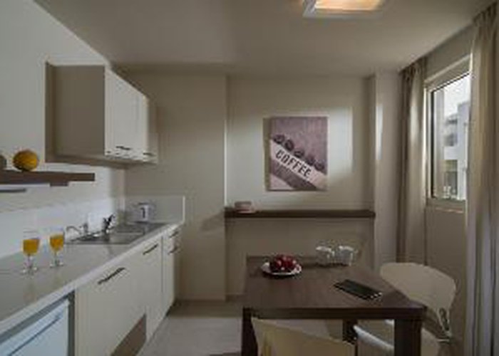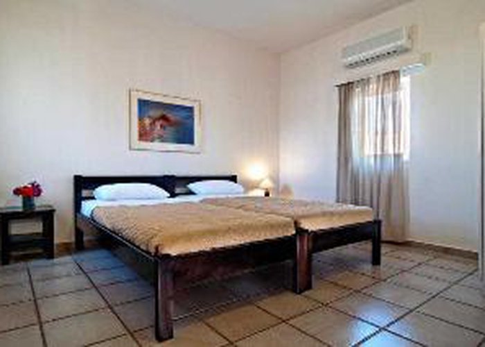 Surrounded by a peaceful Mediterranean garden, this modern apartment-complex features a pool with furnished sun-bathing terrace and a snack bar with pool tables and satellite TV. Accommodation at the Ourania Hotel Apartments consists of spacious apartments, suitable for both groups of friends, couples and families. Each has private balcony or terrace and a kitchenette with toaster, kettle and fridge. The friendly Ourania staff organise Greek nights, bingo nights and quiz nights on a regular basis. The Ourania Hotel Apartments is a 20-minute drive from Heraklion airport, and only 300 m from the sandy beach and the water sports facilities of Gouves. Within walking distance of the hotel, guests may find various shops and markets, as well as taverns and restaurants. The bus stop is conveniently situated right outside the premises.