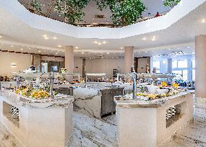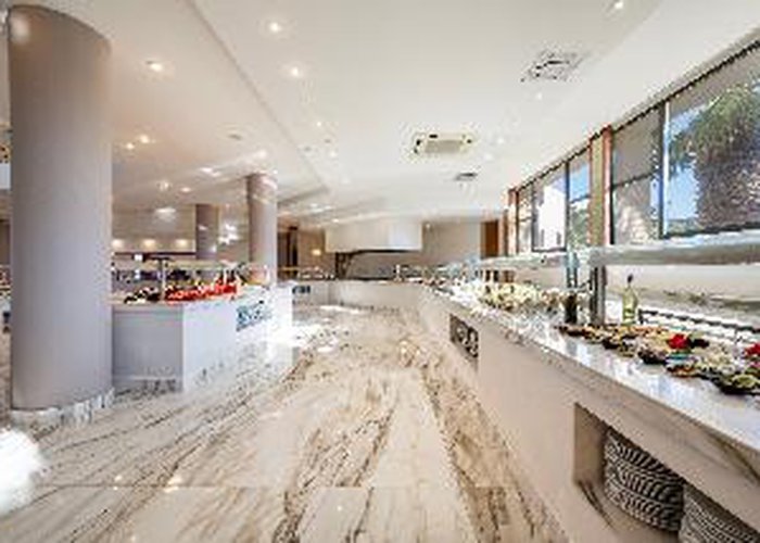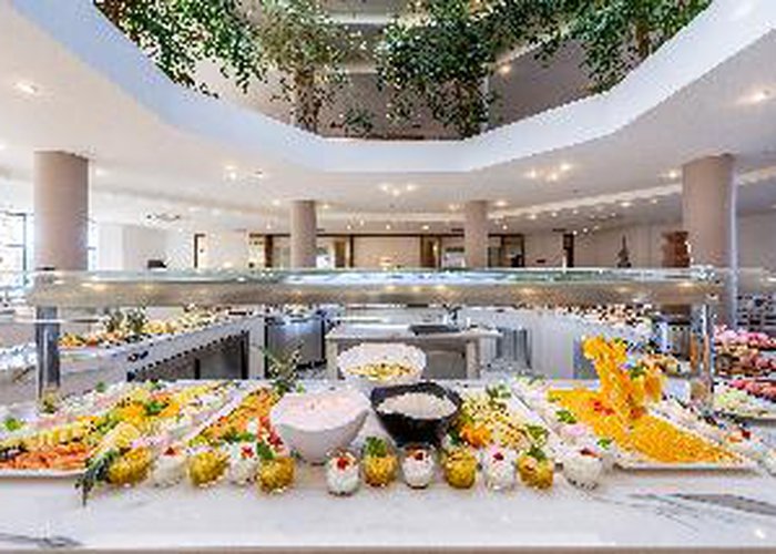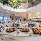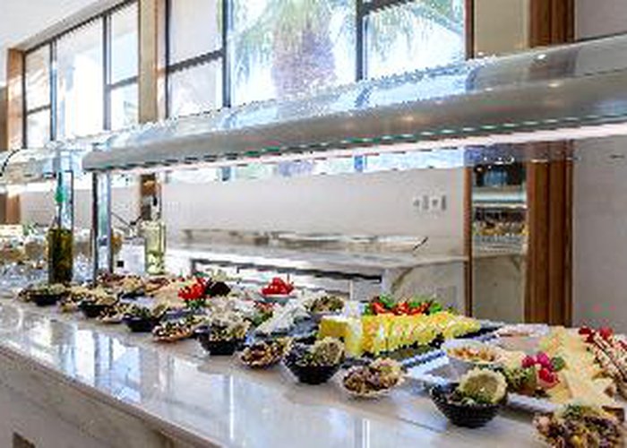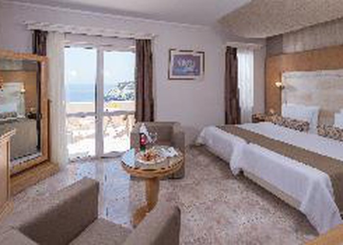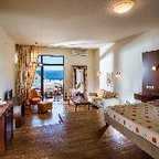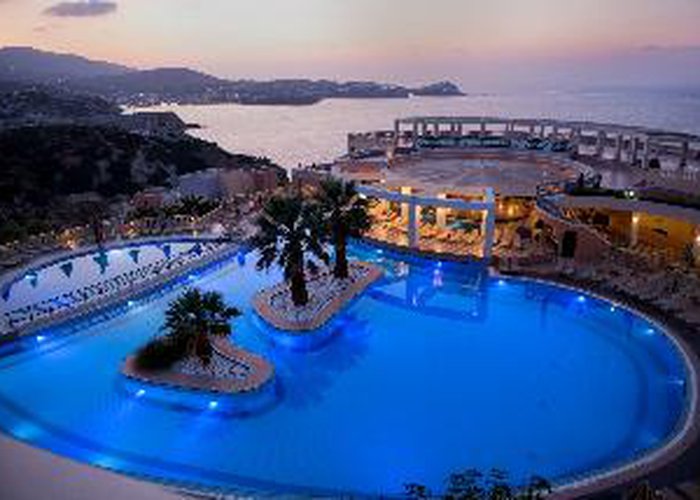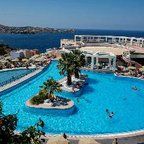 The Hotel Athina Palace Resort & Spa is amongst the best that Crete has to offer. You will truly enjoy every day of your holiday in this special place and definitely feel that you would want to spend your holiday with us again. This property was built in a modern architectural style and is divided in 355 rooms, pastel colored, built terrace, hillside and overlooking the sea. The Hotel has many stairs. For your convenience: main restaurant with indoor and outdoor panoramic view (international and local cuisine buffet varied at will), snack bar, TV corner, shops, meeting rooms.