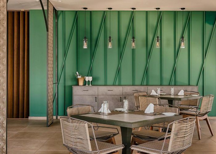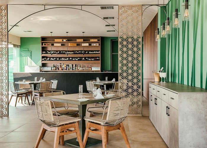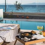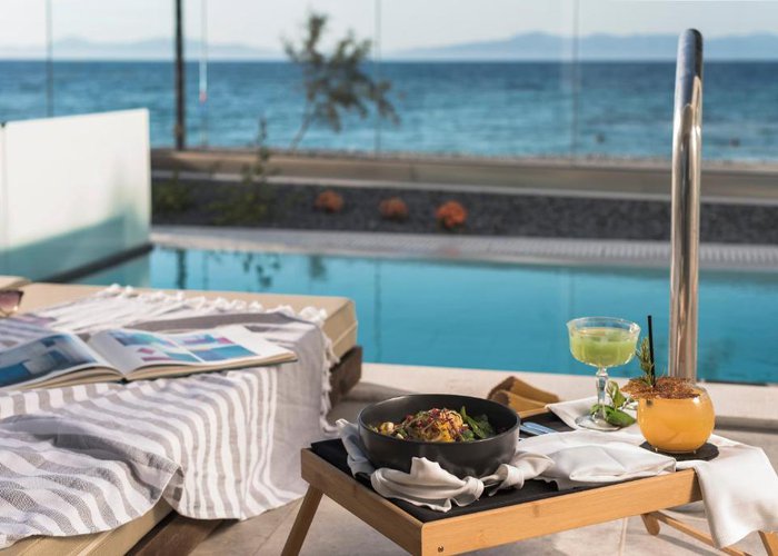 Guests can relax at the café with panoramic views of Ixia Bay. The restaurant serves creative Mediterranean cuisine dishes. The pool bar hosts live DJ nights and serves finger food and signature cocktails.