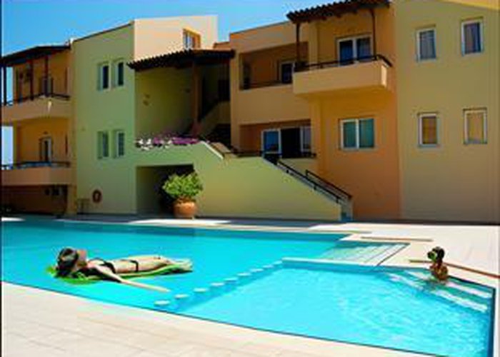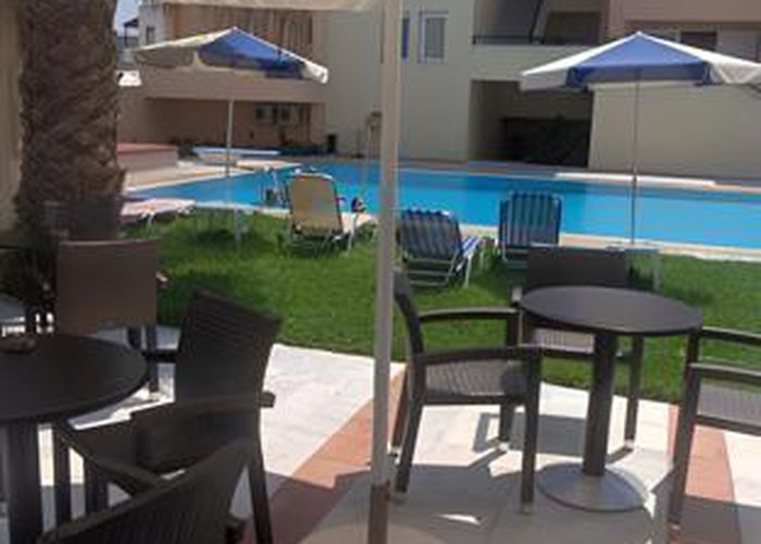 This apartment hotel is located in Maleme, right on the beach.