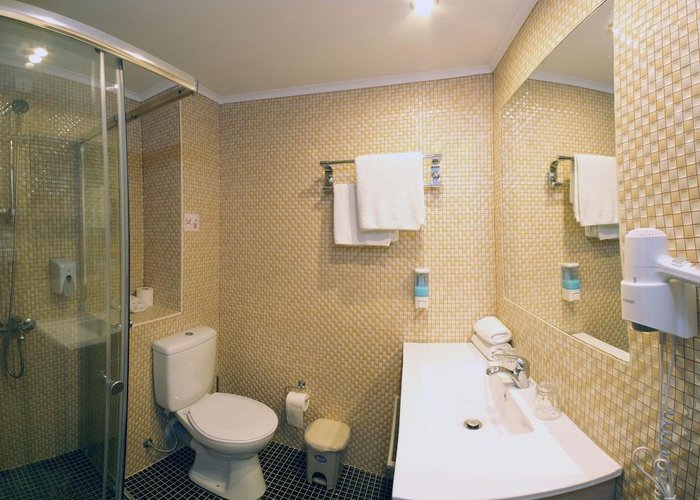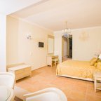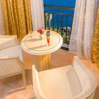 Air conditioning and central heating ensure that rooms maintain comfortable temperatures. In most units, guests can enjoy a view of the sea from a balcony or terrace. The rooms have a double bed and a sofa bed. Separate bedrooms are available. Extra beds can be requested. A safe and a minibar are also available. Additional features include a refrigerator and a tea/coffee station. A direct dial telephone, a television with satellite/cable channels and WiFi (no extra charge) provide all the essentials for a comfortable holiday. Bathrooms are equipped with a shower, a bathtub and a whirlpool bath. For additional convenience, bathrooms also provide a hairdryer. As a special feature, bathrooms are also stocked with cosmetic products and a selection of towels. The hotel has family rooms, non-smoking rooms and smoking rooms.