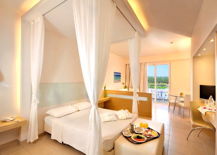 The luxurious hotel Afandou Bay Resort Suites enjoys a beautiful location, literally only steps away from the wonderful beach and the warm waters of the sea. The village centre of Afandou is within walking distance, and one of the most popular golf courses of Greece, the Afandou Golf Course, can also be reached within a short stroll. Faliraki with its host of restaurants, bars, tavernas, shops and nightlife spots is just a short drive away, while the medieval old town of Rhodes is at a distance of about 18 km.