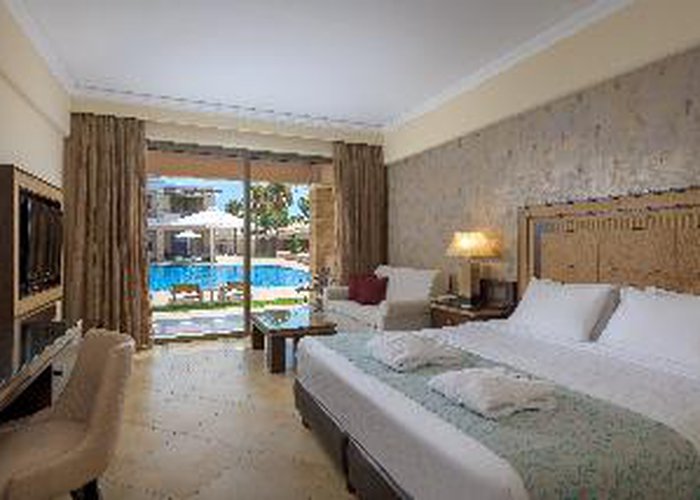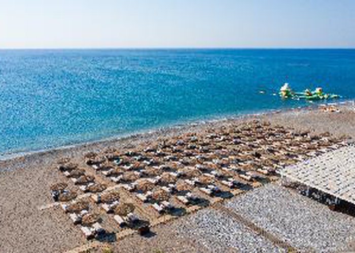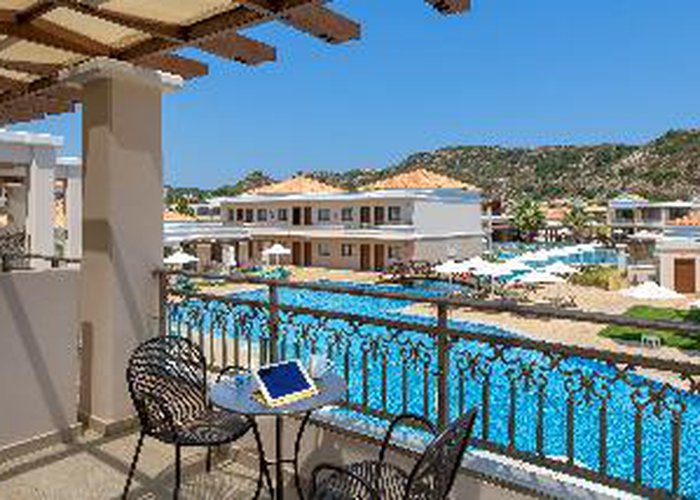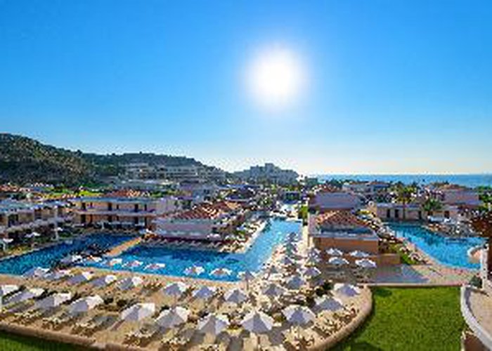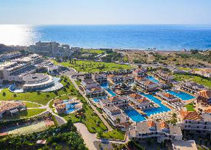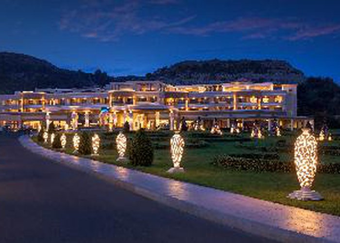 Featuring a prime position close to the crystal clear waters of the Aegean Sea and the harmony of nature, this luxurious resort, one of the largest hotel complexes in Rhodes, perfectly combines with the luxury of the present age. The resort stretches in an impressive area of 120000 sqm and stands out as an oasis surrounded by water and vegetation, distinguishing it from the unpleasant modern structures with their impersonal concrete floors and packed rooms. The eco-friendly hotel creates a unique atmosphere of luxury and tranquillity with first class facilities and high standard accommodation options. Guests will also appreciate the superb spa & wellness area of 1200 sqm and the marvellous sand and pebble beach with crystal-clear waters, reachable by a private underground passage and awarded the blue flag.