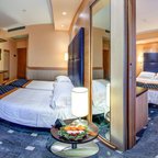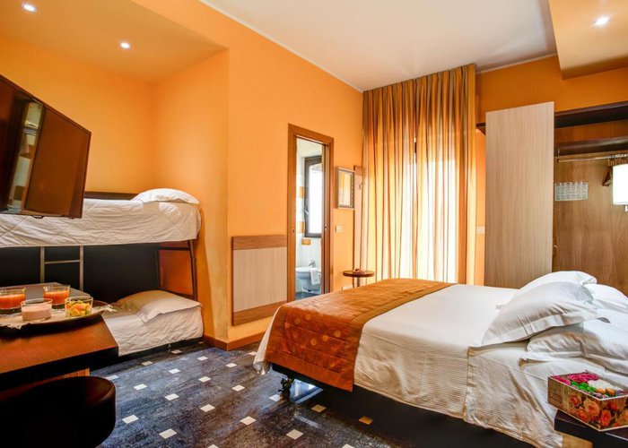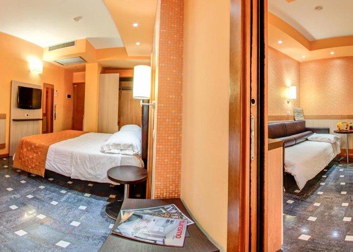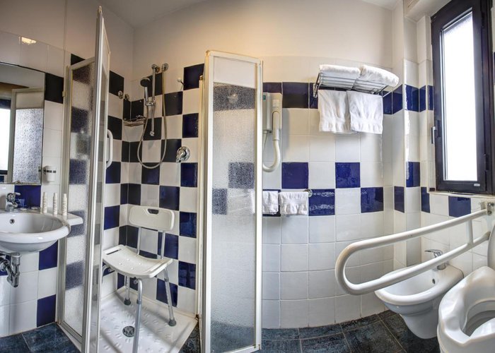 Rooms are equipped with air conditioning and central heating. Some rooms include a balcony. The rooms have a queen-size bed and a sofa bed. Extra beds can be requested. A safe, a minibar and a desk are also available. A telephone, a TV and WiFi (no extra charge) provide all the essentials for a comfortable holiday. Slippers are included. Bathrooms are equipped with a shower, a bathtub and a bidet. A hairdryer is also provided. For extra comfort in the bathrooms, guests are offered cosmetic products. Wheelchair-friendly rooms with wheelchair-accessible bathrooms are also available. The hotel has family rooms and non-smoking rooms.