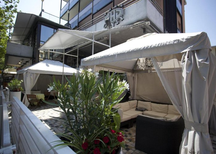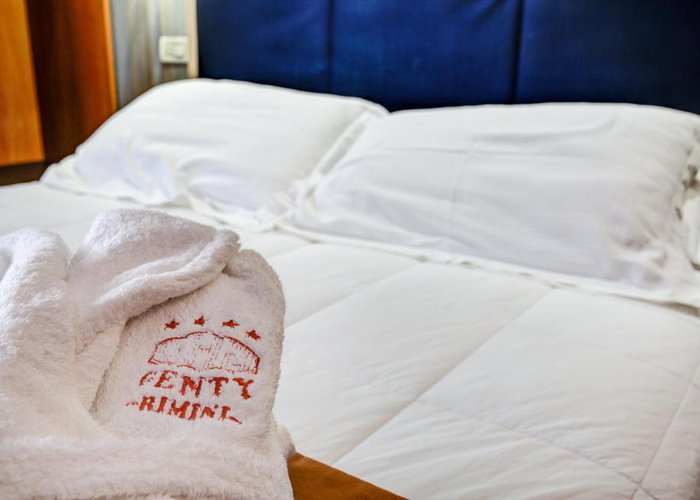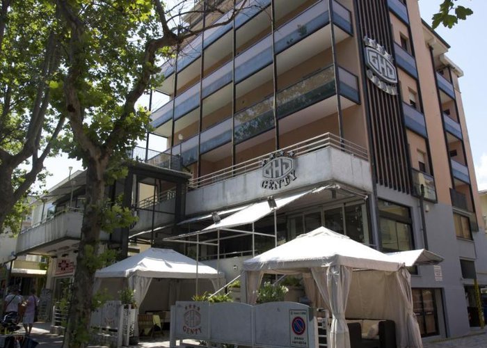 This hotel is located in Rimini, right on the sandy beach.