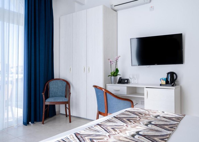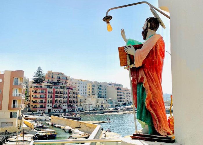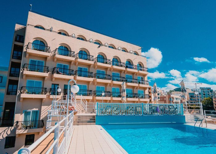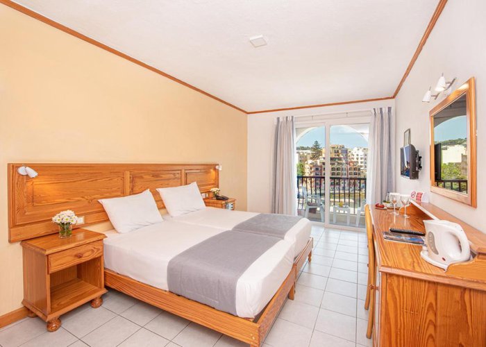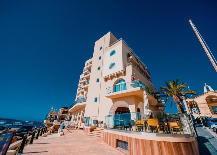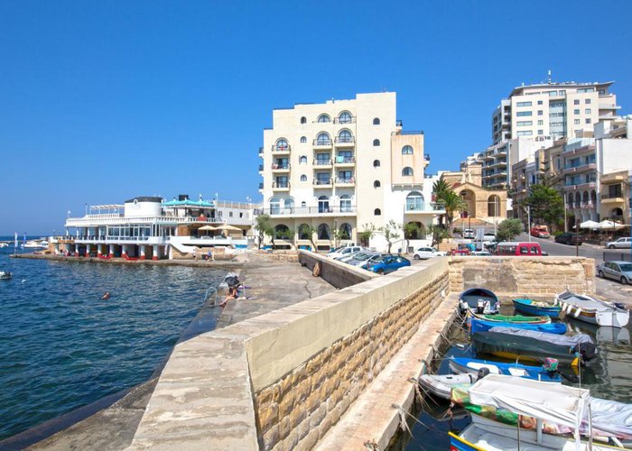 The hotel overlooks the old fishing harbour of St. Paul's Bay, and is flanked on one side by an ancient chapel. It is just a few minutes away from the shops, restaurants, bars and other tourist activities on offer in Bugibba. The bus stop is a 2-minute walk from the hotel, and there's a rocky beach next to the hotel.