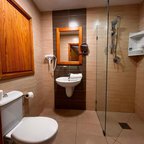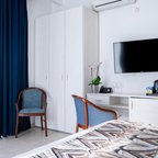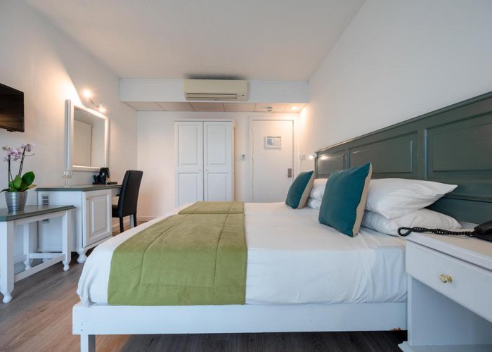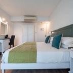 Air conditioning and central heating ensure that rooms maintain comfortable temperatures. In most units, guests can enjoy a view of the sea from a balcony or terrace. Rooms have a double bed or a queen-size bed. Extra beds can be requested. A safe, a minibar and a desk are also available. Guests will also find a mini fridge included among the standard features. An ironing set is provided for guests' convenience. A direct dial telephone, a television with satellite/cable channels, a radio, a plug adapter, an alarm clock and WiFi (no extra charge) are provided as well. Bathrooms are equipped with a shower and a bathtub, as well as a hairdryer. For extra comfort in the bathrooms, guests are offered cosmetic products. Wheelchair-friendly rooms can be booked. The hotel has family rooms, non-smoking rooms and smoking rooms.