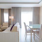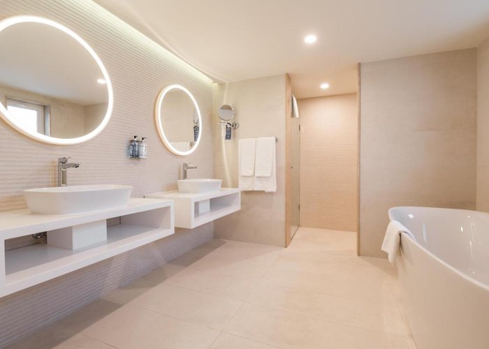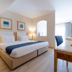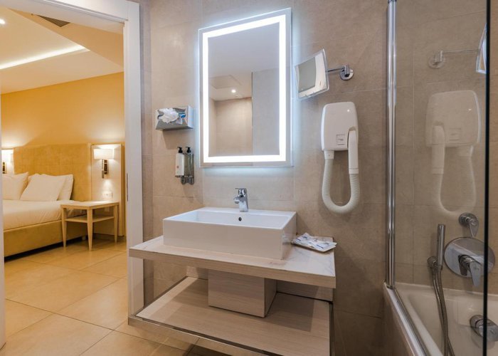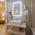 Air conditioning and central heating ensure that rooms maintain comfortable temperatures. Guests can relax on the balcony or terrace. For young travellers, children's beds can be provided. There is also a safe and a desk or, for an additional fee, a minibar. There is also an ironing set and a trouser press. Other features include a direct dial telephone, a flatscreen television and WiFi (no extra charge). A hairdryer and a telephone are available in the bathrooms, which are equipped with a shower and a bathtub. For extra comfort in the bathrooms, guests are offered cosmetic products. Wheelchair-friendly rooms with wheelchair-accessible bathrooms are also available. Family rooms are available for parents with children.
