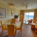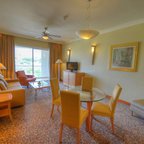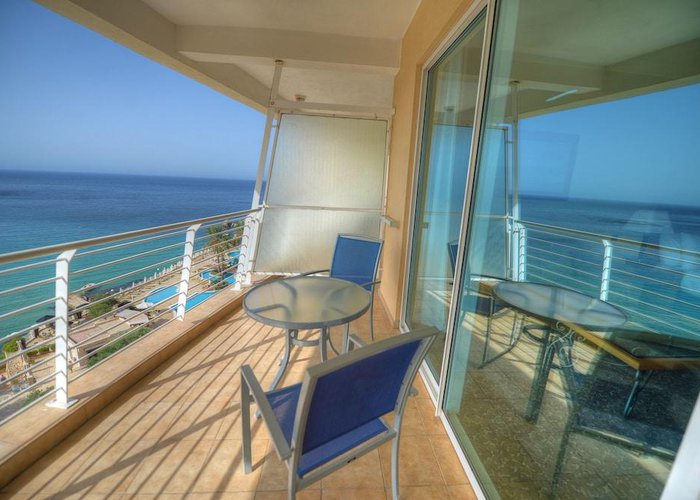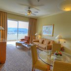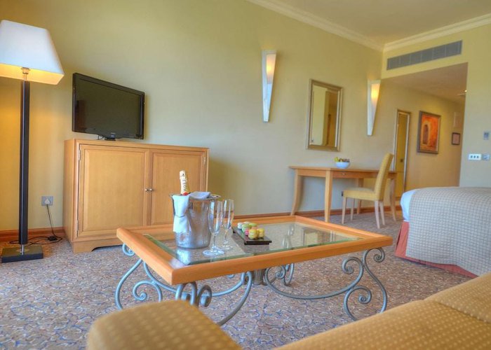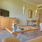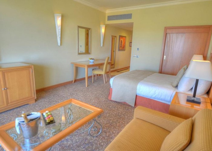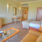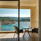 Rooms are equipped with air conditioning and central heating. Guests can relax and enjoy the sea views from the balcony or private terrace of some rooms. All rooms are carpeted and include a queen-sized bed and a sofa bed. Extra beds can be requested. A safe, a minibar and a desk are also available. Additional features include a refrigerator, a microwave and a tea/coffee station. Further amenities include an ironing set and a trouser press. A telephone, a television with satellite and pay-per-view channels, an alarm clock and WiFi are provided as well. Guests will also find slippers in their rooms. Bathrooms are equipped with a shower and a bathtub. A hairdryer, a vanity mirror and bathrobes are available for daily use. Cosmetic products and a selection of towels provide additional comfort in the bathrooms. Guests can also book wheelchair-friendly rooms with wheelchair-accessible bathrooms. The resort has family rooms, non-smoking rooms and smoking rooms.