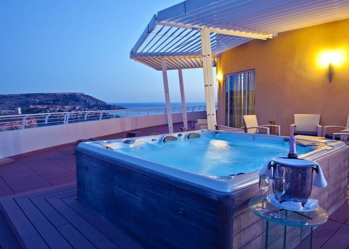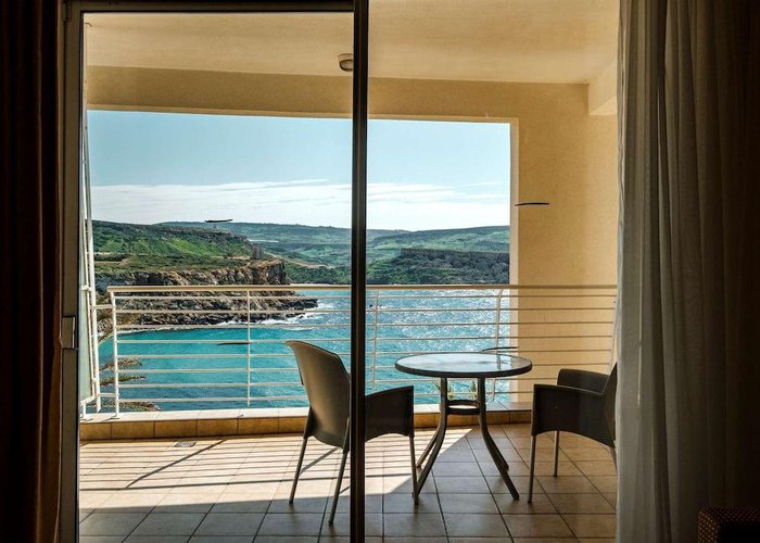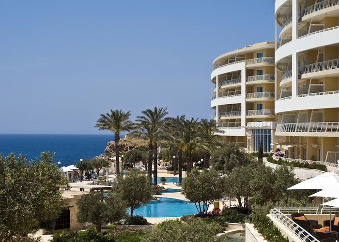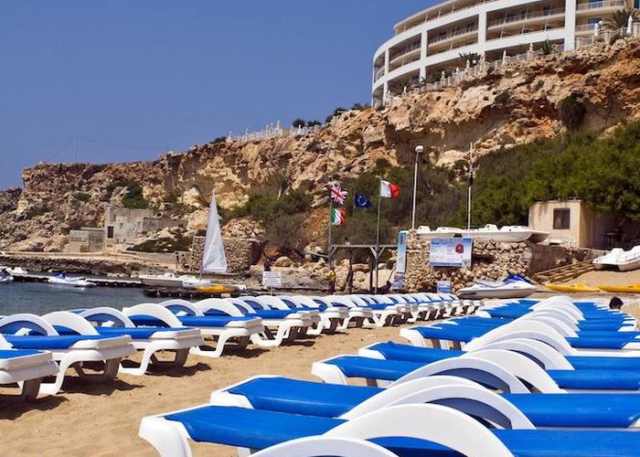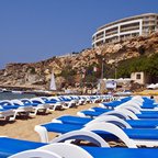 This beach hotel is situated on the edge of a cliff overlooking one of Malta's most beautiful sandy beaches, Golden Bay. The hotel enjoys one of the best locations on the Island of Malta, offering panoramic views over the bay below and beyond. Also, it is only a short drive southwards to St. Paul’s Bay and the town of Bugibba, and a ten-minute drive northwards to the ferryboat that connects to Gozo, Malta's sister island.
