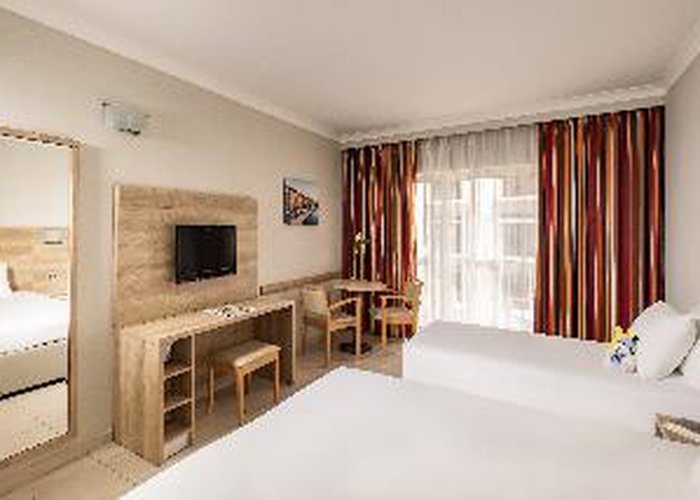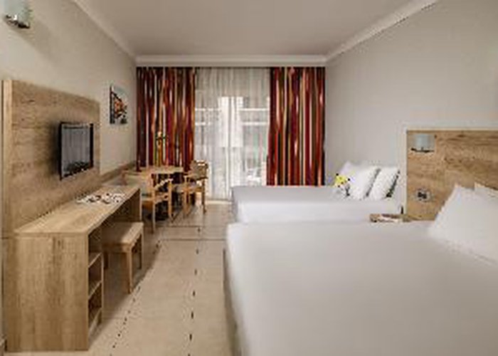 Negative: By most european standards this is not a 4 star I would say it is more like a 2 star. The facilities and the rooms are all quite old and much more like what you would find in a 2 star. Plus all inclusive is not available between breakfast and 11 am and ends at 11pm.