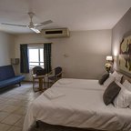 Air conditioning, central heating and a fan ensure that rooms maintain comfortable temperatures. Guests can enjoy the sea view from a balcony or terrace. Guests are sure to get a good night's sleep in the double bed. Extra beds can be requested. A safe and a desk are also available. Guests will also find a mini fridge included among the standard features. A telephone, a TV, a radio and WiFi (no extra charge) provide all the essentials for a comfortable holiday. Bathrooms are equipped with a shower and a bathtub, as well as a hairdryer. For extra comfort in the bathrooms, guests are offered a selection of towels. Family rooms are available for parents with children.