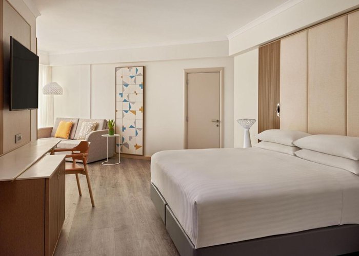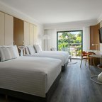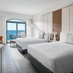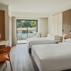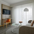 Air conditioning and central heating ensure that rooms maintain comfortable temperatures. Most units include a balcony with sea views, where guests can relax and linger a while. Rooms have a double bed, a queen-size bed, a king-size bed or a sofa bed. Extra beds can be requested. A safe, a minibar and a desk are also available. Guests will also find a tea/coffee station included among the standard features. Further amenities include an ironing set and a trouser press. A direct dial telephone, a television with satellite/cable channels, a radio, an alarm clock and WiFi provide all the essentials for a comfortable holiday. Slippers are included. Bathrooms are equipped with a shower and a bathtub. A hairdryer, a vanity mirror, bathrobes and a telephone are available for daily use. As an extra convenience, bathrooms provide cosmetic products. Wheelchair-friendly rooms can be booked. Family rooms are available for parents with children.