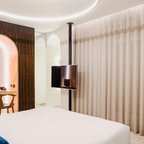 Rooms are equipped with air conditioning and central heating. A balcony is among the standard features of some rooms. Rooms have a double bed or a queen-size bed. Separate bedrooms can be booked. Extra beds can be requested. A safe, a minibar and a desk are also available. Guests will also find a tea/coffee station included among the standard features. An ironing set is provided for guests' convenience. A telephone, satellite television, a radio and WiFi are provided as well. Slippers are included. Bathrooms are equipped with a shower. A hairdryer, a vanity mirror, bathrobes and a telephone are available for daily use. The hotel has non-smoking rooms.