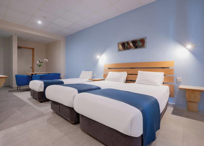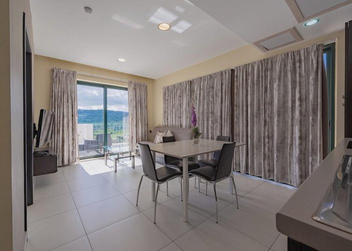 The apartment hotel is located on Xemxija Bay, in a prominent location overlooking the picturesque St. Paul's Bay with breathtaking views of the Maltese countryside. It is just a short walk from bars, dining opportunities and happening nightlife. The beach at Golden Bay is 3 km away. Bugibba, where the nearest bus station can be found, is just 1.5 km away. Further links to public transport can be found in the immediate vicinity of the hotel.