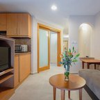 Air conditioning, central heating and a fan ensure that rooms maintain comfortable temperatures. A balcony is included as standard in some rooms. The rooms have a queen-size bed and a sofa bed. Separate bedrooms are available. Extra beds can be requested. A safe provides secure storage for guests' personal property. For self-catering guests, there is a well-equipped kitchenette with a refrigerator, mini fridge, stovetop, microwave, tea/coffee station and oven. An ironing set is provided for guests' convenience. A direct dial telephone, a television with satellite/cable channels, a radio and WiFi are provided as well. A hairdryer and a telephone are available in the bathrooms, which are equipped with a shower and a bathtub. As a special feature, bathrooms are also stocked with cosmetic products and a selection of towels. Guests can also book wheelchair-friendly rooms with wheelchair-accessible bathrooms. The apartment hotel has family rooms and non-smoking rooms.