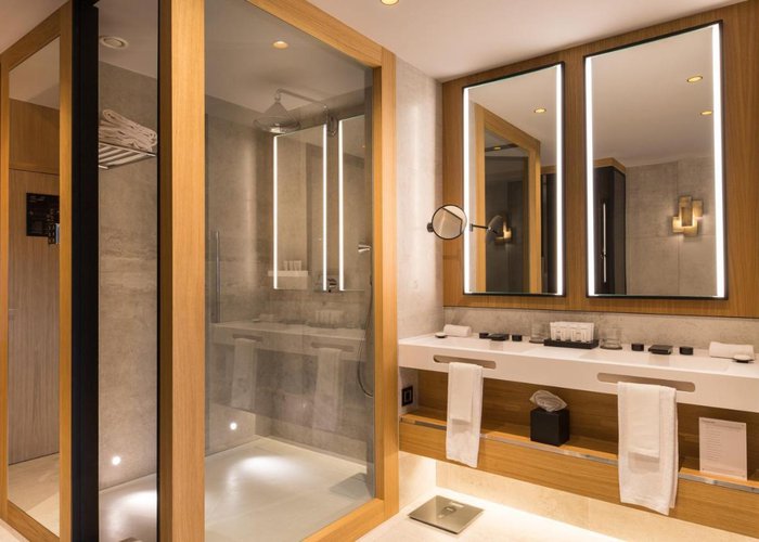 Air conditioning and individually adjustable heating ensure that rooms maintain comfortable temperatures. All rooms are carpeted and include a double bed, a queen-size bed or a king-size bed. Extra beds can be requested. A safe, a minibar and a desk are also available. Additional features include a mini fridge and a tea/coffee station. Other amenities available include an ironing set and a trouser press. A direct dial telephone, a television with satellite/cable channels, a radio, a stereo system, an alarm clock and WiFi (no extra charge) provide all the essentials for a comfortable holiday. Slippers are included. Bathrooms are equipped with a shower, a bathtub and a bidet. A hairdryer, bathrobes and a telephone are provided. As a special feature, bathrooms are also stocked with cosmetic products and a selection of towels. Guests can also book wheelchair-friendly rooms with wheelchair-accessible bathrooms. The hotel has family rooms, non-smoking rooms and smoking rooms.
