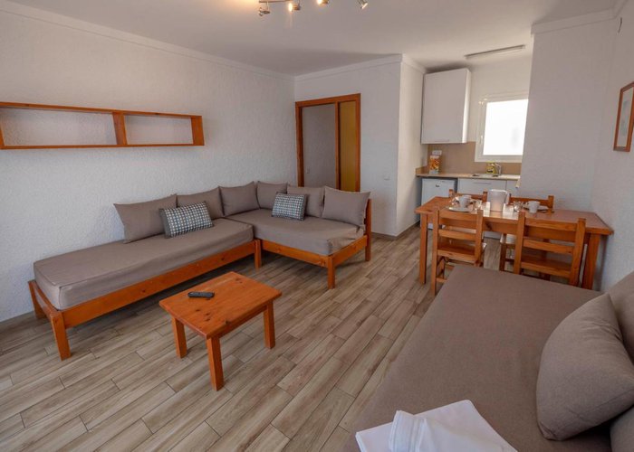 Central heating ensures that rooms maintain comfortable temperatures. Guests can enjoy the sea view from a balcony or terrace. Rooms include a double bed. Separate bedrooms are available. Extra beds can be requested. A safe and a minibar are also available. The kitchenette comes with a refrigerator and a microwave. A telephone, a television with satellite/cable channels and WiFi provide all the essentials for a comfortable holiday. Bathrooms are equipped with a shower and a bathtub. The hotel has family rooms and 30 non-smoking rooms.