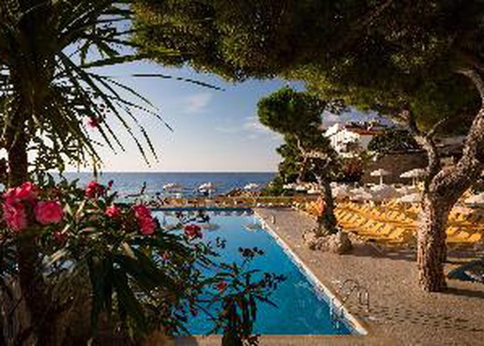 This hotel is situated on the beautiful beach of Cala Rovira. The hotel is located on the beach, where guests can enjoy a range of exciting water sports. The centre of Platja d'Aro, with its wealth of restaurants and shops, can be found just a short walking distance away. Aquadiver water park is 1 km from the hotel. This wonderful hotel comprises beautifully-designed guest rooms, which command stunning views over the mesmerising Costa Brava. The hotel offers unrivalled, personalized services and exemplary facilities, to ensure an unparalleled experience for every type of traveller. Guests are sure to enjoy a truly memorable stay at this delightful hotel.