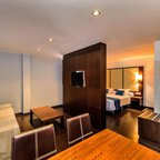 Air conditioning and individually adjustable heating ensure that rooms maintain comfortable temperatures. In most units, guests can enjoy a view of the sea from a balcony or terrace. Rooms have a double bed or a king-size bed. Extra beds can be requested. A safe, a minibar and a desk are also available. Additional features include a refrigerator, a microwave and a tea/coffee station. There is also a washing machine and an ironing set. A direct dial telephone, a television with satellite/cable channels, a radio and WiFi (no extra charge) provide all the essentials for a comfortable holiday. A hairdryer and a telephone are available in the bathrooms, which are equipped with a shower and a bathtub. The hotel has family rooms and non-smoking rooms.