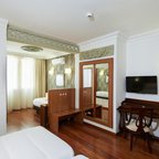 Rooms are equipped with air conditioning and central heating. A balcony or terrace is a standard feature of some rooms. Rooms have a double bed, a queen-size bed or a king-size bed. Extra beds can be requested. A safe, a minibar and a desk are also available. Guests will also find a refrigerator included among the standard features. A telephone, satellite television, a radio and WiFi (no extra charge) ensure optimal comfort. A hairdryer and a telephone are available in the bathrooms, which are equipped with a shower and a bathtub. As a special feature, bathrooms are also stocked with cosmetic products and a selection of towels. Wheelchair-friendly rooms with wheelchair-accessible bathrooms are also available. The hotel has family rooms, non-smoking rooms and smoking rooms.