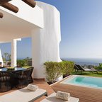 These eclusive and luxury apartments lie in the south of Tenerife Island, in Guía de Isora area. Located in the front of the sea in the privileged golf course of Abama, the enjoy an impressive view of the La Gomera Island and the Atlantic Ocean. Las Terrazas de Abama is surrounded ny luxuriant gardens and palm trees.