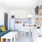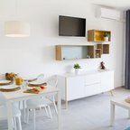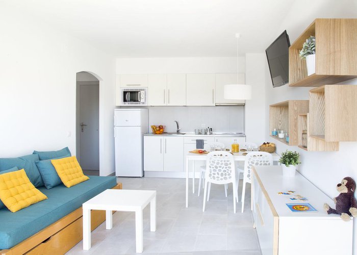 Rooms feature a living area, a kitchen and a bathroom, and air conditioning ensures just the right temperature. Some rooms have a balcony, which gives guests additional space for rest and relaxation. The rooms have a double bed and a sofa bed. Separate bedrooms can be booked. Children's beds can be requested for younger guests. A safe and a minibar are also available. There is a fully-equipped kitchenette with a refrigerator, stovetop, microwave, tea/coffee station and freezer. A telephone, a TV and WiFi (no extra charge) ensure optimal comfort. The bathrooms have a shower and a bathtub.
