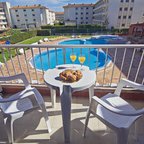 This charming apartment hotel is located amidst well-kept lush green surrounds on the outskirts of Estartit, approximately 400 m from the nearest beautiful beach. The resort centre with its abundance of restaurants, bars and supermarkets is about 800 m away and links to the public transport are to be found directly out front.