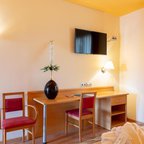 A junior suite and 57 double rooms are available to guests in a 6-storey main building and a 5-storey auxiliary building. The reception desk is open round the clock. Amenities include a baggage storage service, a safe and a drinks machine. Wireless internet access in public areas allows guests to stay connected. The tour desk offers assistance with booking excursions. The hotel has a range of facilities for guests with disabilities. The hotel has wheelchair-accessible facilities and a lift. Additional facilities include a TV room. Guests arriving by car can park their vehicles in the garage or in the car park. Further services and facilities include room service and a laundry service. Complimentary newspapers are available. A fax machine is available for guests' business needs.