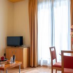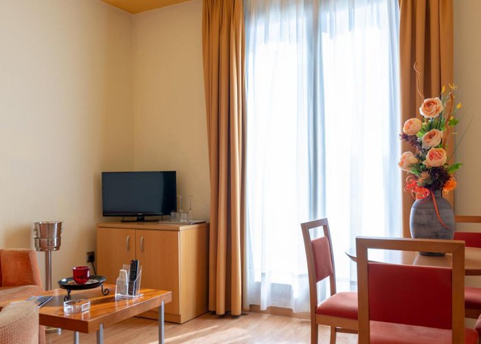 Rooms are equipped with air conditioning and individually adjustable heating. A balcony is among the standard features of some rooms. Rooms have a double bed or a queen-size bed. A safe, a minibar and a desk are also available. A direct dial telephone, a TV, a radio and WiFi (no extra charge) ensure optimal comfort. A hairdryer and a telephone are provided in the bathrooms, which include a shower and a bathtub. Wheelchair-friendly rooms can be booked. The hotel has family rooms and 58 non-smoking rooms.