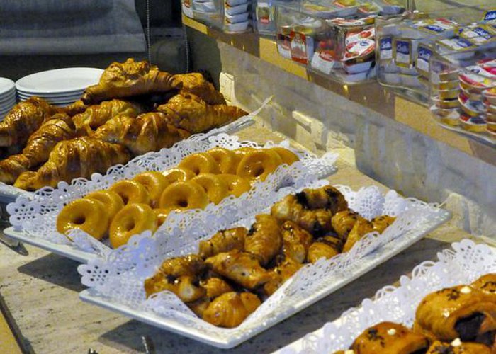Dining facilities include a dining room, a breakfast room, a café, a bar and a pub. The restaurant has air conditioning and high chairs for children. Bed and breakfast can be booked. At breakfast, guests serve themselves at the generous buffet. Various dishes can be ordered à la carte for lunch and dinner. Diet meals and children's meals can be prepared on request. The hotel also offers special catering options.