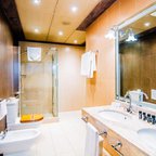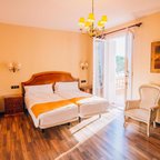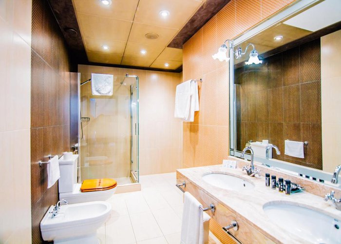 Air conditioning and central heating ensure that rooms maintain comfortable temperatures. Guests can relax and enjoy the sea views from the balcony or private terrace of some rooms. All rooms are carpeted and include a queen-sized bed and a sofa bed. Extra beds can be requested. A safe, a minibar and a desk are also available. Guests will also find a refrigerator included among the standard features. An ironing set is provided for guests' convenience. A direct dial telephone, a television with satellite/cable channels and WiFi (no extra charge) are provided as well. A hairdryer and a telephone are available in the bathrooms, which are equipped with a shower and a bathtub. For extra comfort in the bathrooms, guests are offered cosmetic products. Wheelchair-friendly rooms can be booked. The hotel has family rooms, non-smoking rooms and smoking rooms.