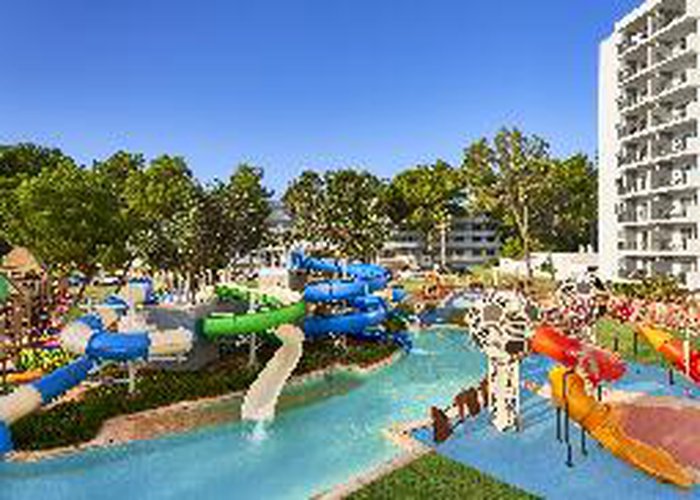 Situated in the northeast of the sunny Mediterranean island of Majorca, this popular holiday club is located in a lovely lakeside position just a few steps from the fine sandy beach of Puerto de Alcúdia on Alcúdia Bay. The airport is 60 km from the property. The complex has been renovated (2017-2022) offering spacious 1,468 rooms with air conditioning, utensils, a private bathroom and a balcony. A wide gastronomic offer has 5 buffets, 3 speciality restaurants and 4 snack bars. Guests can enjoy 8 swimming pools of different sizes with playgrounds, large gardens, sports area and night shows. Sport facilities include a go-kart circuit, tennis courts, mini golf and squash. This hotel is the ideal place for family holidays with a choice of exciting entertainment options.