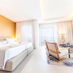 Air conditioning and central heating ensure that cabins maintain comfortable temperatures. Most units include a balcony with sea views, where guests can relax and linger a while. All cabins are carpeted and have a double bed, a queen-size bed or a king-size bed. Separate bedrooms are available. Extra beds can be requested. A safe, a minibar and a desk are also available. Additional features include a refrigerator and a tea/coffee station. Amenities include an ironing set and a trouser press. A direct dial telephone, a television with satellite/cable channels, a radio, a stereo system and WiFi (no extra charge) provide all the essentials for a comfortable holiday. Amenities provided in the cabins include slippers and a daily paper. Bathrooms are equipped with a shower, a bathtub and a whirlpool bath. A hairdryer, a vanity mirror and bathrobes are available for daily use. Wheelchair-friendly cabins can be booked. The resort has family cabins and non-smoking cabins.